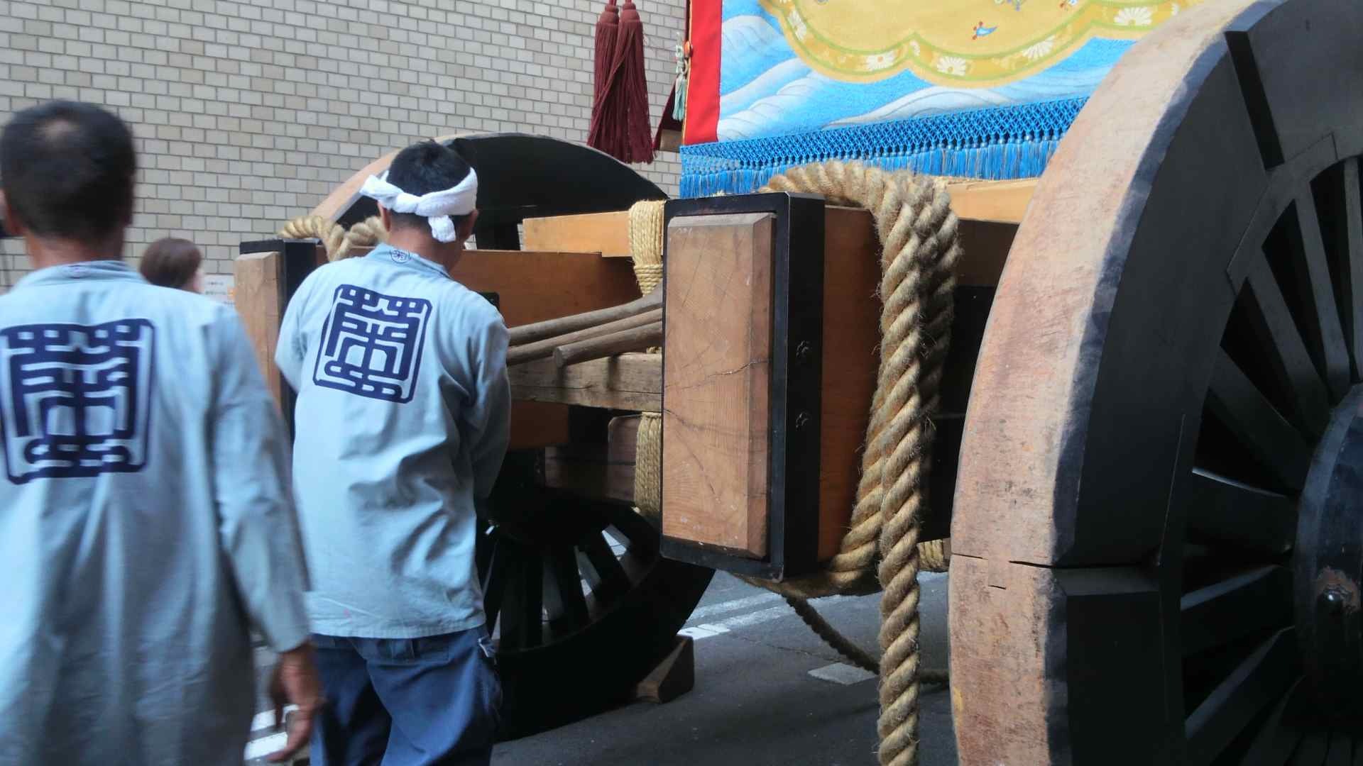 いくところを見ることができると聞き、早速組み立て中の山鉾の近くに。