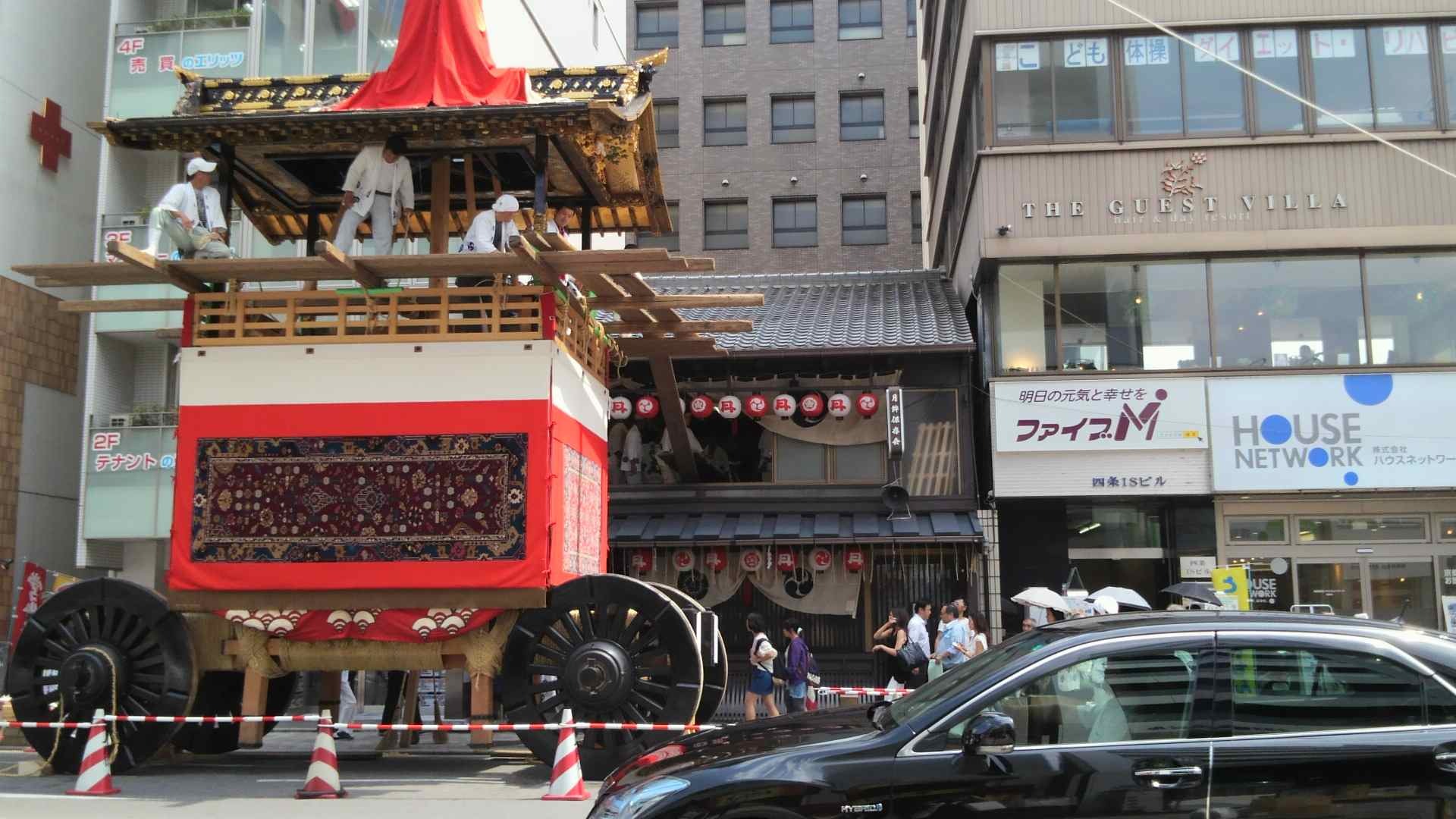 初日午後京都についたら、四条通りをお囃子を鳴らしながら行く鉾が!